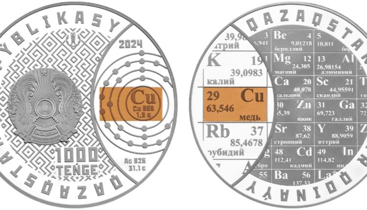 Cu (мыс) – «Қазақстанның жер қойнауы» монеталарының жаңа сериясын ашады. Бұл серия Қазақстанның жер байлығын ашуға арналған. Оның аясында Менделеев кестесіндегі химиялық элементтердің бөлшектері бар, жаңа технологиямен күміс монеталарды әзірлеу жоспарланған. Монета дизайнында Менделеев кестесі мен Cu (мыс) химиялық элементінің айшықталған бөлігі ұсынылып отыр, – деп қосты ведомство.
